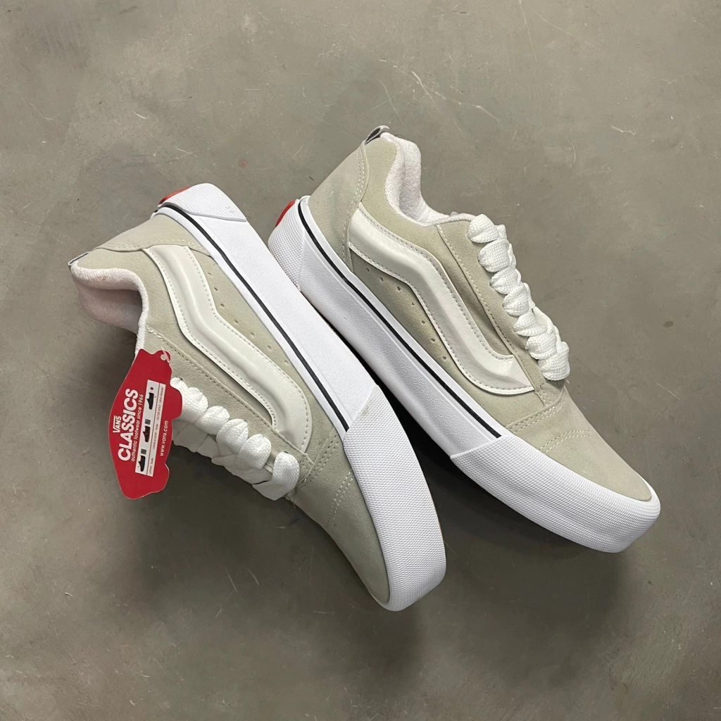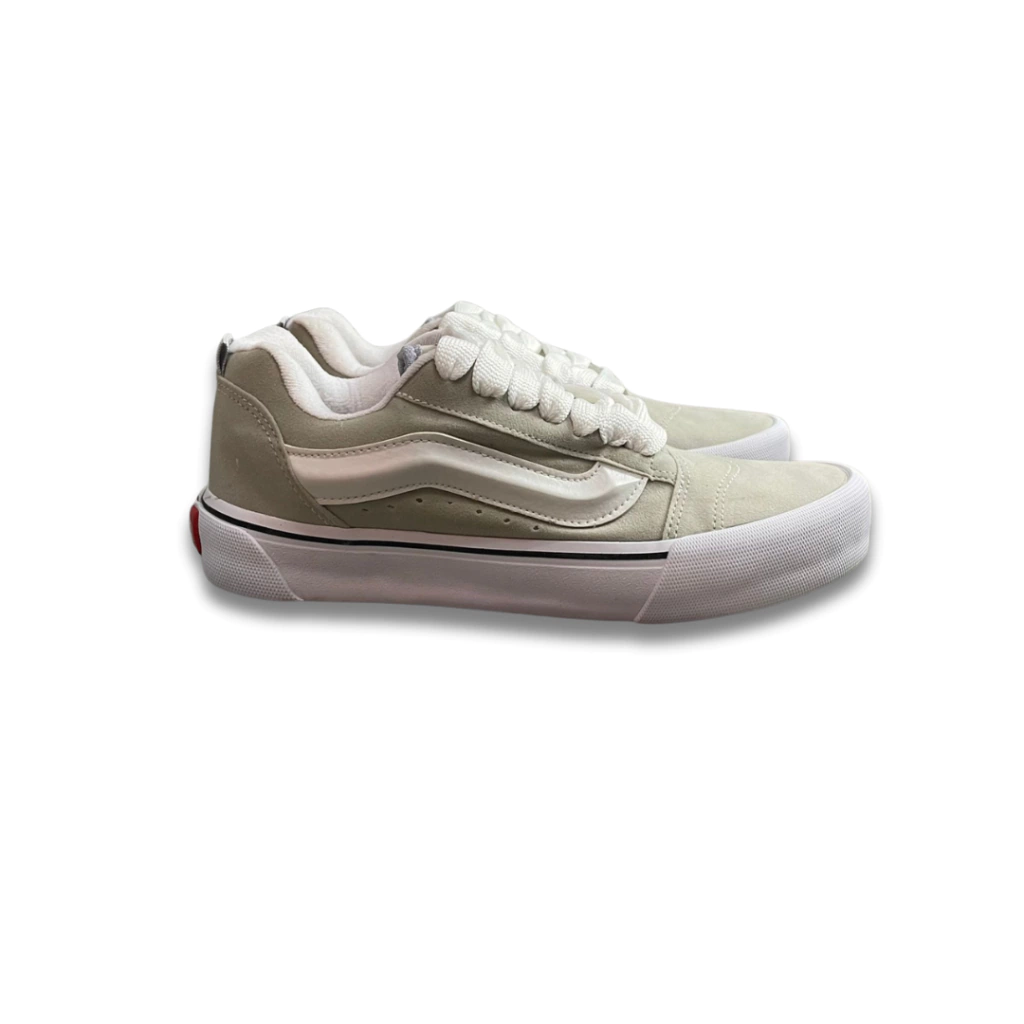 O tênis Vans Knu Skool é a fusão perfeita entre a nostalgia dos anos 90 e o estilo urbano atual. Inspirado no clássico tênis de cano baixo da Vans, esse modelo traz uma estética volumosa e ousada, com lingueta acolchoada, cadarços oversized e a icônica Sidestripe Vans moldada em 3D, garantindo destaque em qualquer look streetwear.